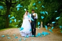 - Практически каждый свадебный фотограф в Киеве может на примере показать съёмку с различными атрибутами. Одним из самых популярных атрибутов являются воздушные шары. Казалось бы, просто воздушные шарики, а какие хорошие кадры можно сделать, используя данный атрибут. Очень важным моментом является то, что шарфы должны быть очень яркими, что бы не сливаться с зеленью, небом и нарядом невесты.