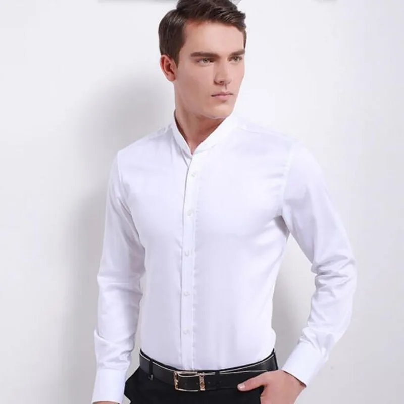 Мужская приталенная рубашка ,стойка воротник.(S—XXL)