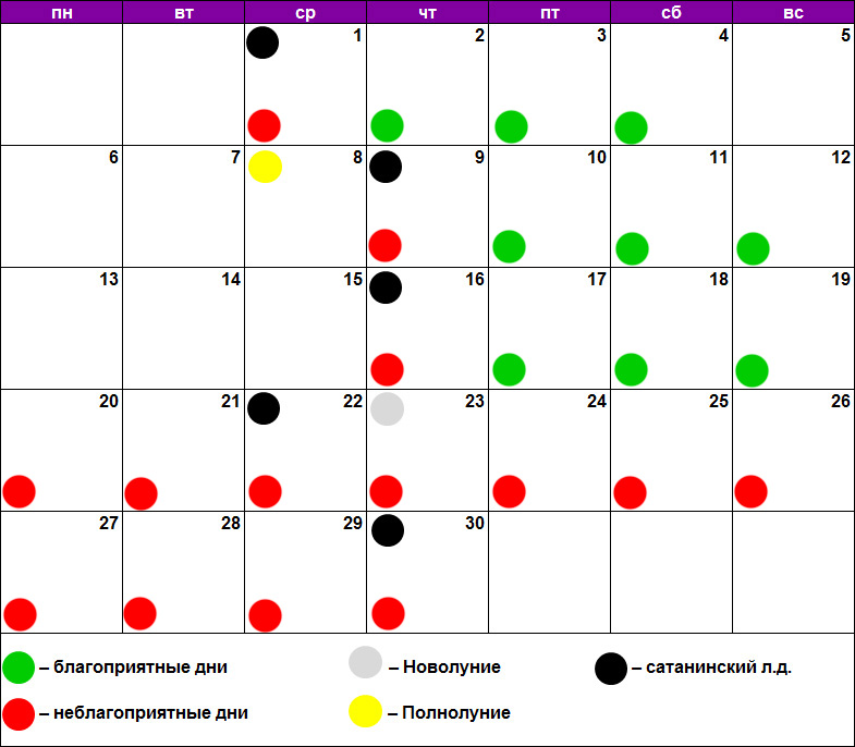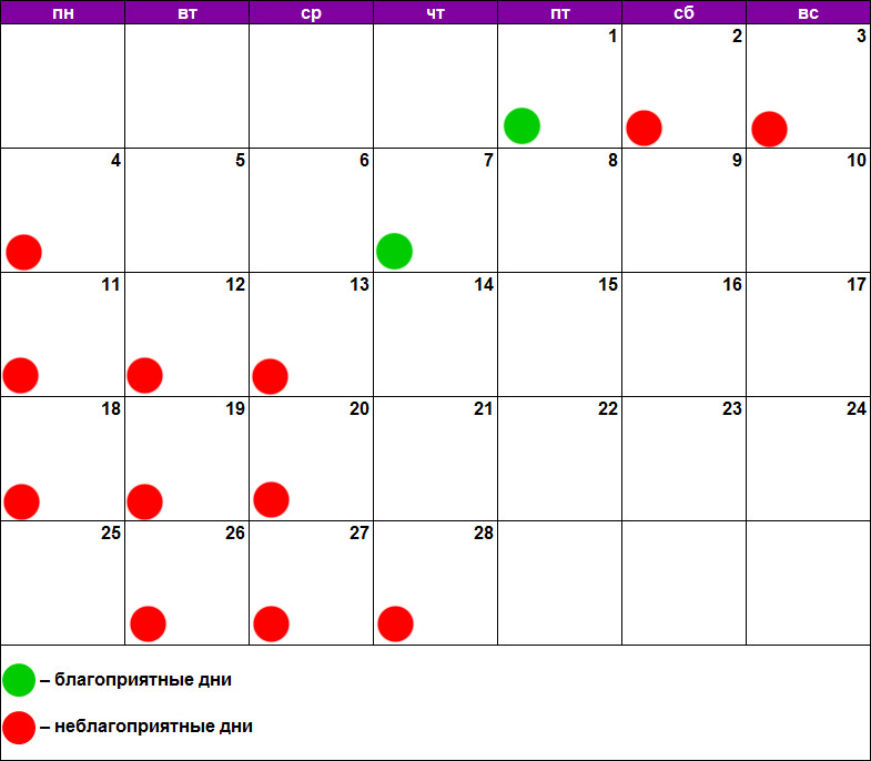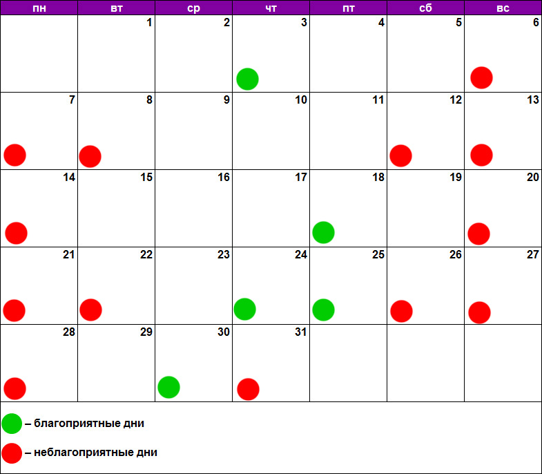 - декабрь – нет подходящих дней.
