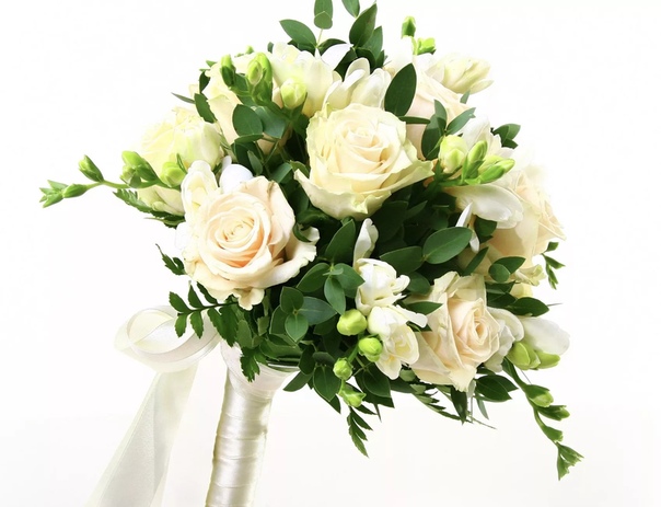 композиции для букета невесты из фрезий и белых роз, ирисов и других цветов