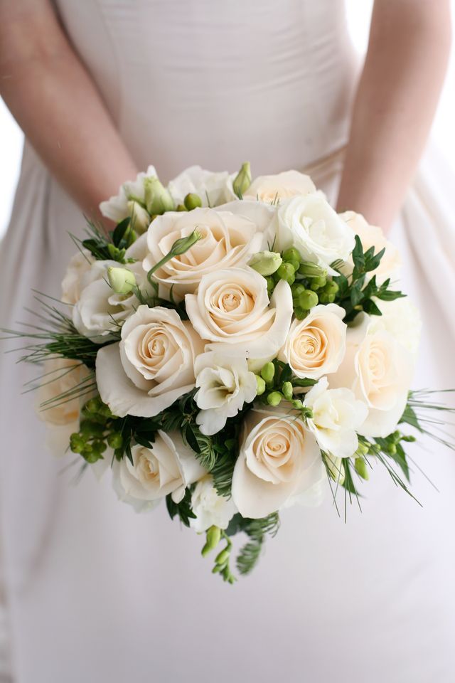 Если ваше свадебное платье – не белоснежное (кипенно-белое), а, например, молочно-белое, отдайте предпочтение розовым и кремовым растениям, чтобы ткань наряда не казалась грязноватой.