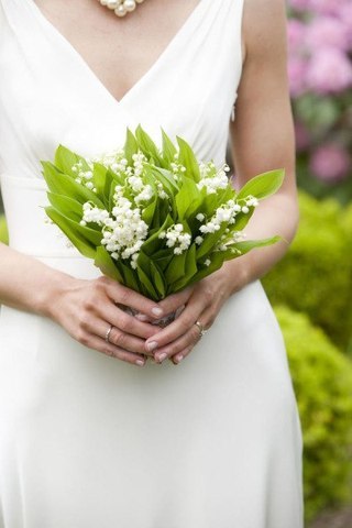 Традиционные розы, лилии, фрезии, орхидеи – далеко не единственный вариант цветов для свадебного букета. Не менее привлекательно (и не так тривиально) смотрятся композиции из сезонных растений, например, нежных ландышей.