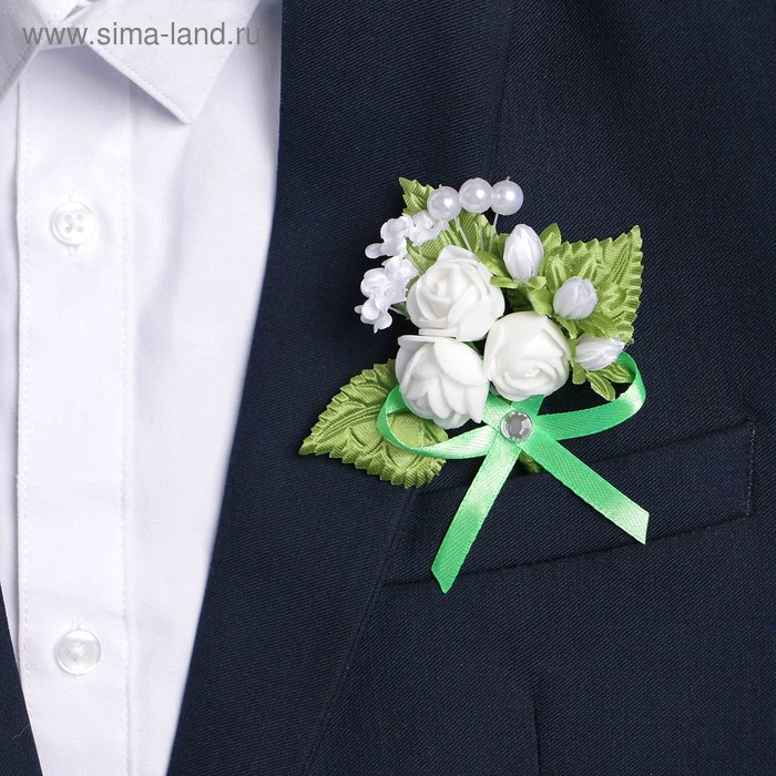 Плюсы бутоньерки из искусственных цветов очевидны: она не мнётся, постоянно имеет отличный вид, отличается лёгкостью и удобством фиксации.