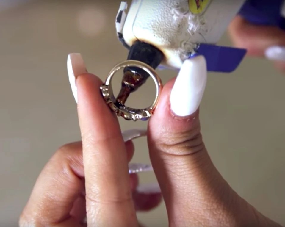 Приклеивание чего-либо, не предназначенного специально для украшений, вызывает проблемы. Золото и платина обычно не реагируют, однако многие кольца легированы небольшими количествами других металлов, и они также могут не вступать в реакцию.Ваша кожа также может плохо отреагировать на инородное вещество.