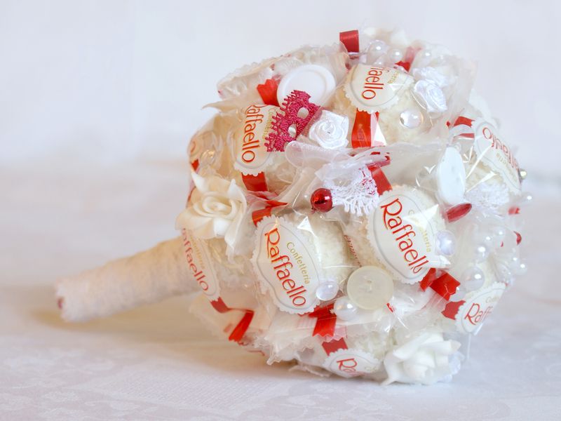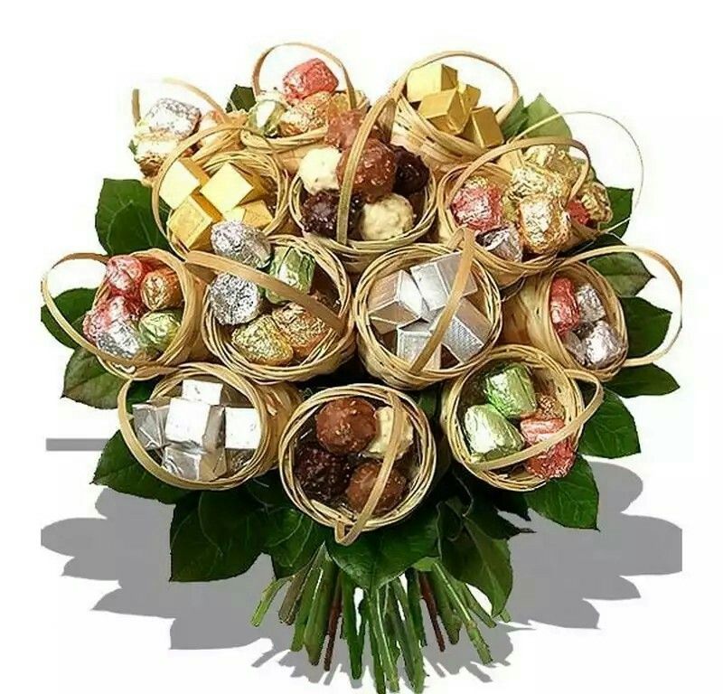 Фото подарка на свадьбу вместо цветов ‒ сладости