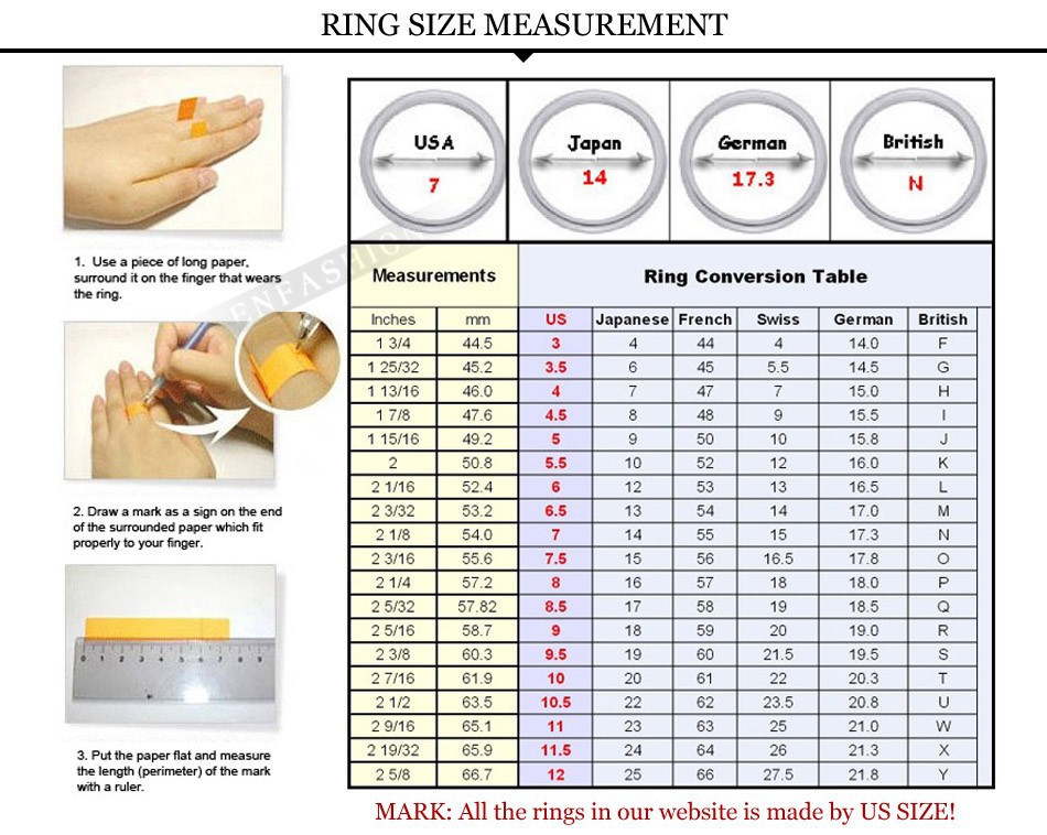 Запишите измерения в миллиметрах или дюймах, и вы можете использовать мою международную таблицу размеров колец, чтобы преобразовать их в свой размер.