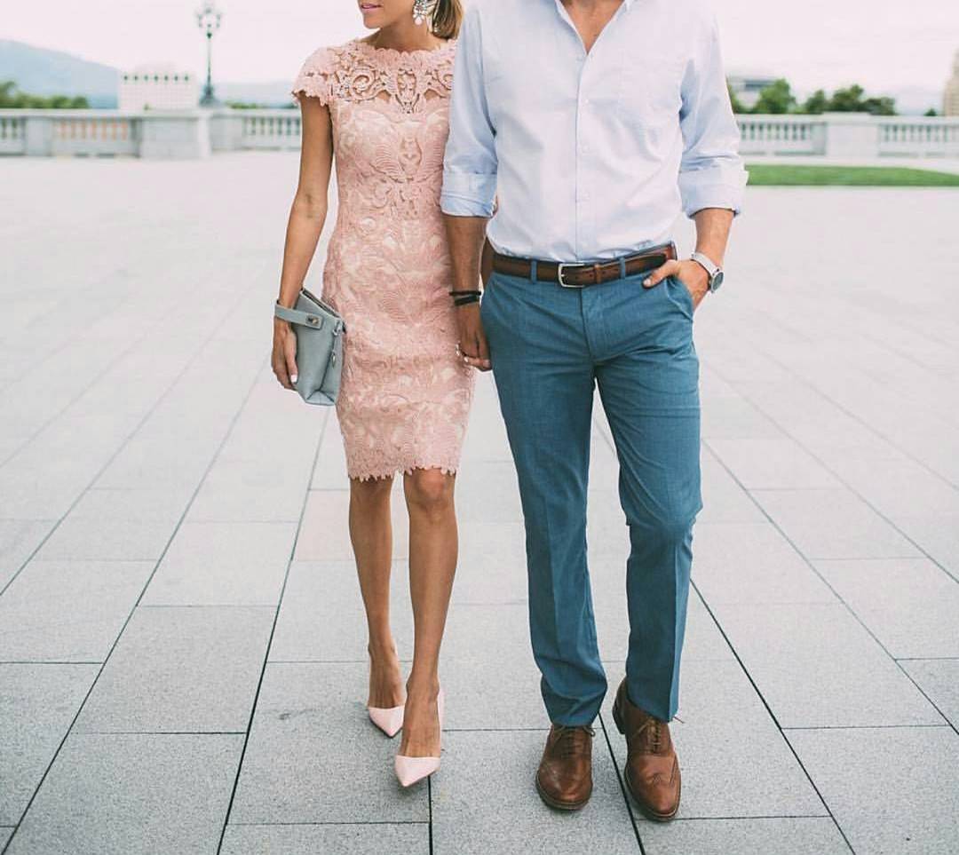 - Если мужчина собирается присутствовать на свадьбе со спутницей, нужно позаботиться об их гармоничном образе как пары. Желательны наряды, сочетающиеся по стилю и гамме.