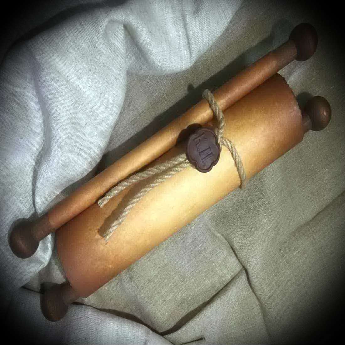 - Завязать свиток можно при помощи шпагата и печати из полимерной глины, также можно прикрепить на красивые палочки и свернуть с двух сторон. Любой из этих вариантов будет смотреться оригинально.