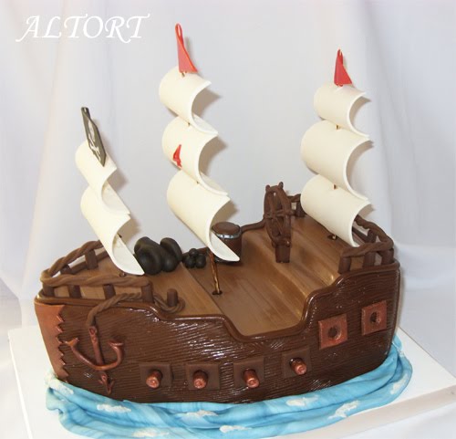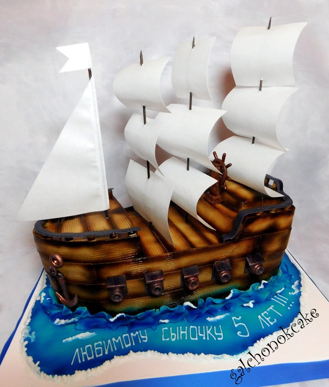 Кораблик может быть в одной плоскости из мастики или в объемном формате: