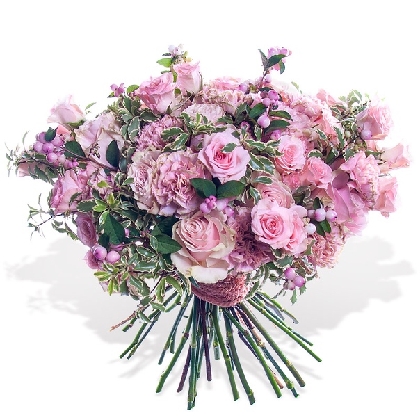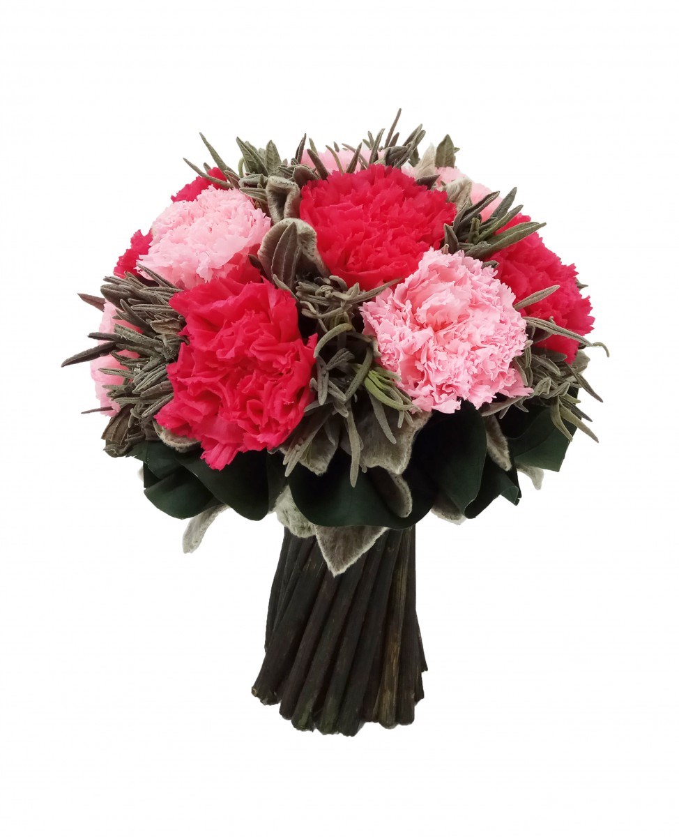 символизм, богатство оттенков и форм, монокомпозиции из розовых, белых или красных гвоздик, а также сочетание с розами и лизиантусами