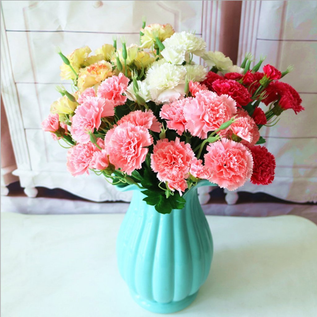 Гвоздики были завезены к нам из Средиземноморья и быстро распространилась по всему миру. Запах у них довольно стойкий и несколько пряный, что нравится далеко не всем. Цветение продолжается очень долго: с середины лета и по заморозки. Доступны в продаже круглый год. К преимуществам также относится то, что они: