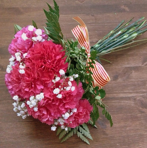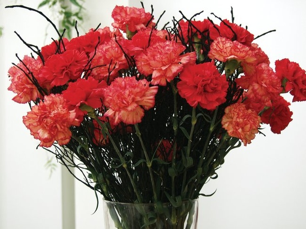 Кстати, о гвоздиках мы уже писали в статье про красный букет невесты. Она поможет составить идеальную композицию из роз, гербер, тюльпанов и т.