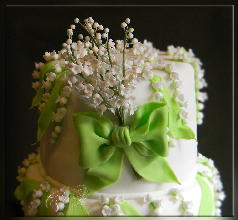 Инструктор по сахарному цвету, Макико Сирл из Maki’s Cakes, Великобритания, изображает ландыши в двух своих красивых свадебных тортах ниже.