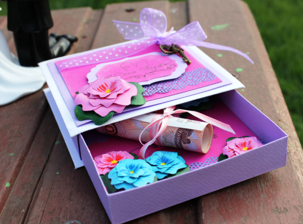 В общем, можно фантазировать и дальше. А можно попробовать сделать несколько иной свадебный подарок своими руками, не имеющий к деньгам прямого отношения. Например: