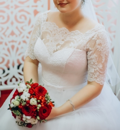 Роскошная грудь – мечта многих девушек. Обладательницы пышных форм должны учесть при выборе свадебного платья, что грудь должна быть красиво зафиксирована. Здесь не пойдет глубокое декольте, поскольку девушке будет неловко, например, находясь у алтаря в церкви. Для хорошей поддержки бюста подберите модель на широких бретельках. Этот стиль свадебного наряда смотрится оригинально всегда, визуально корректируя фигуру, а особенно для девушек с широкими предплечьями.