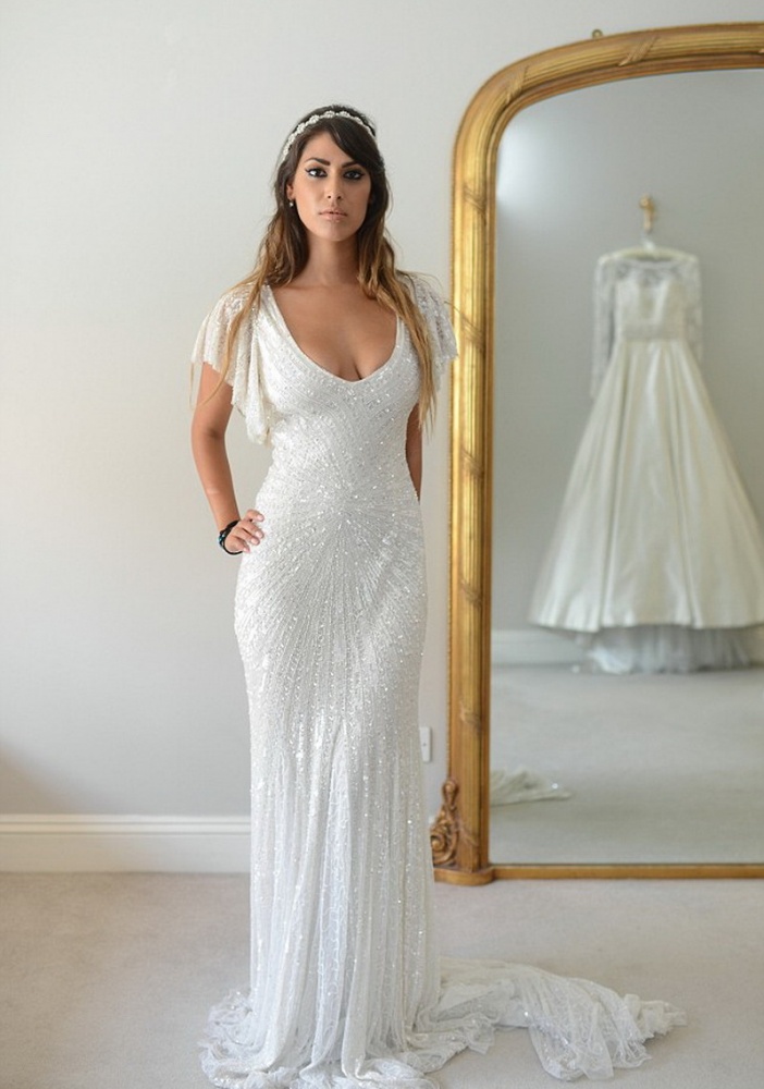 Такие фасоны идеально смотрятся на невестах с большой грудью, главное покупать не слишком обтягивающие модели, а слегка облегающие.