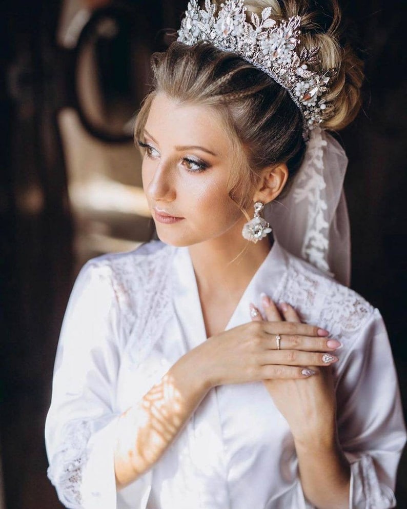 Скрывать или не закрыватьЕсли вы планируете носить вуаль, вам нужно выбрать диадему, которая будет хорошо с ней работать. Традиционные диадемы хорошо сочетаются с вуалями, но современный стиль не всегда подходит.