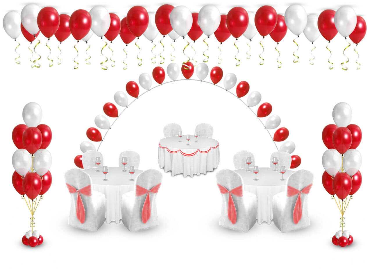 Красно-белые шарики на свадьбу или любой иной оттенок шаров могут использоваться для украшения практически всех праздничных локаций. Чаще всего ими оформляются: