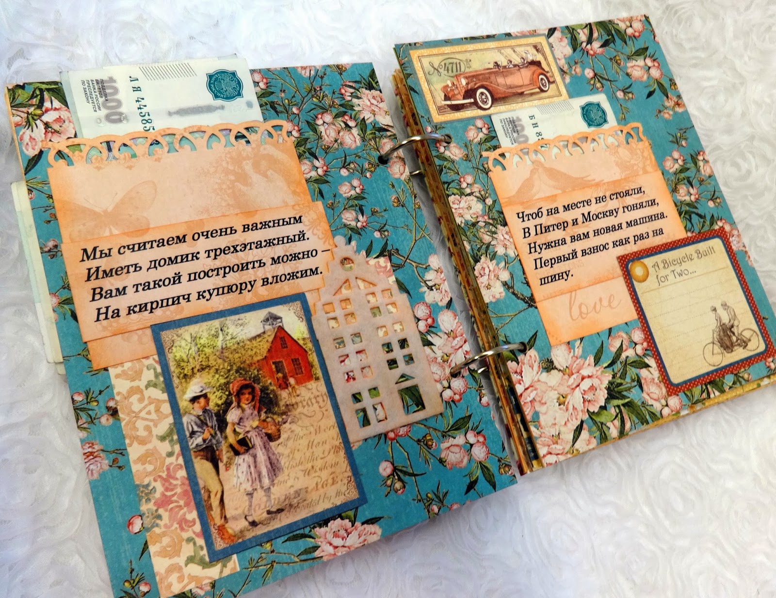Лучший подарок – книга. С классикой не спорят, но преподнести книгу с денежными знаками – тоже оригинально и нестандартно. Пусть это будет самодельная книга «История развития бюджета» или «Дневник роста банка семьи». Где на каждой странице кроме прикреплённой по возрастанию купюры будет и пожелание к её использованию. В предисловии такой книги можно написать поздравление: