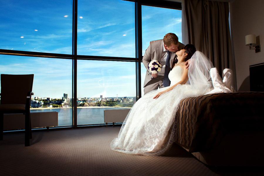 Предложите свадебному фотографу и видеооператору продолжить съемку в номере для новобрачных. Конечно, вы не покажете им слишком многого, но позволите ненадолго заглянуть в вашу личную жизнь. На фоне вида из окна гостиницы получаются роскошные фотографии.