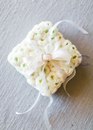Если вы задумали более экстравагантный вариант, то не отказывайте себе в разнообразии материалов для создания уникальной подушечки для свадебных колец. Сшить ее можно своими руками почти из любой ткани или даже связать из шерстяных ниток.