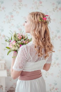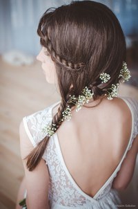В этом стиле выполняются прически для невест под названием «Рустик». Вид прически представляет собой ниспадающие из-под венка небрежные локоны. Такая легкая воздушная и в то же время простая прическа придает невесте легкий, естественный образ. Твой стиль рустик выглядит так, как-будто ты только что после сна. Дополнить прическу «Рустик» можно любым украшением из цветов. Сочетание такой прически с воздушным платьем из крепдешина в стиле рустик создает образ волшебной феи.