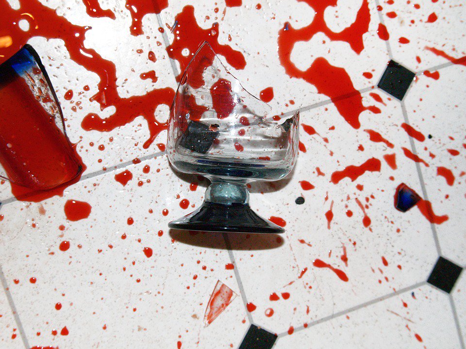 Битое стекло проникает в кожу и вызывает рваные раны, такие же, как острыми предметами, иглами и бритвами.