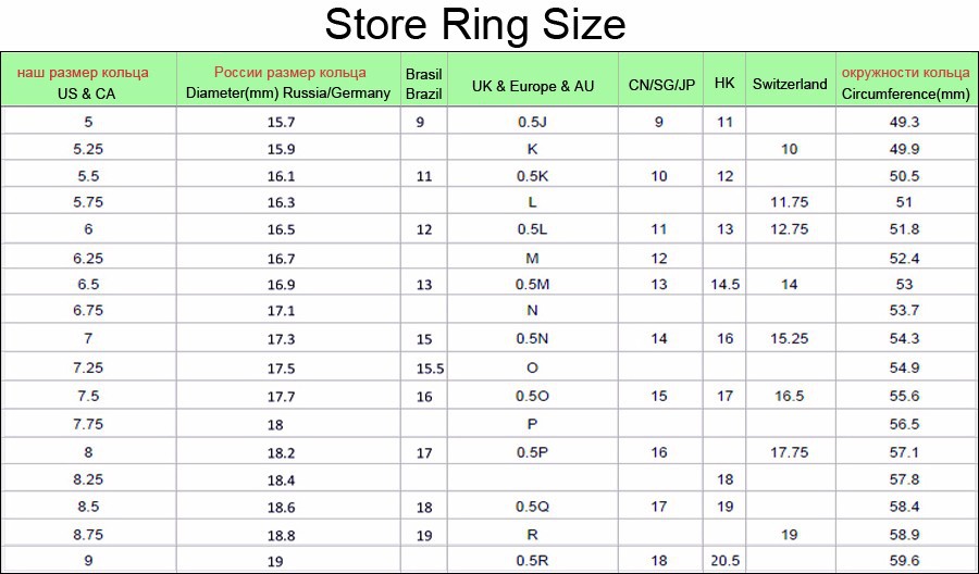 Уже знаете ваш размер кольца, но ваш ювелир работает с другой шкалой размеров? Воспользуйтесь таблицой снизу, чтобы найти ваш размер кольца в нужной шкале размеров.