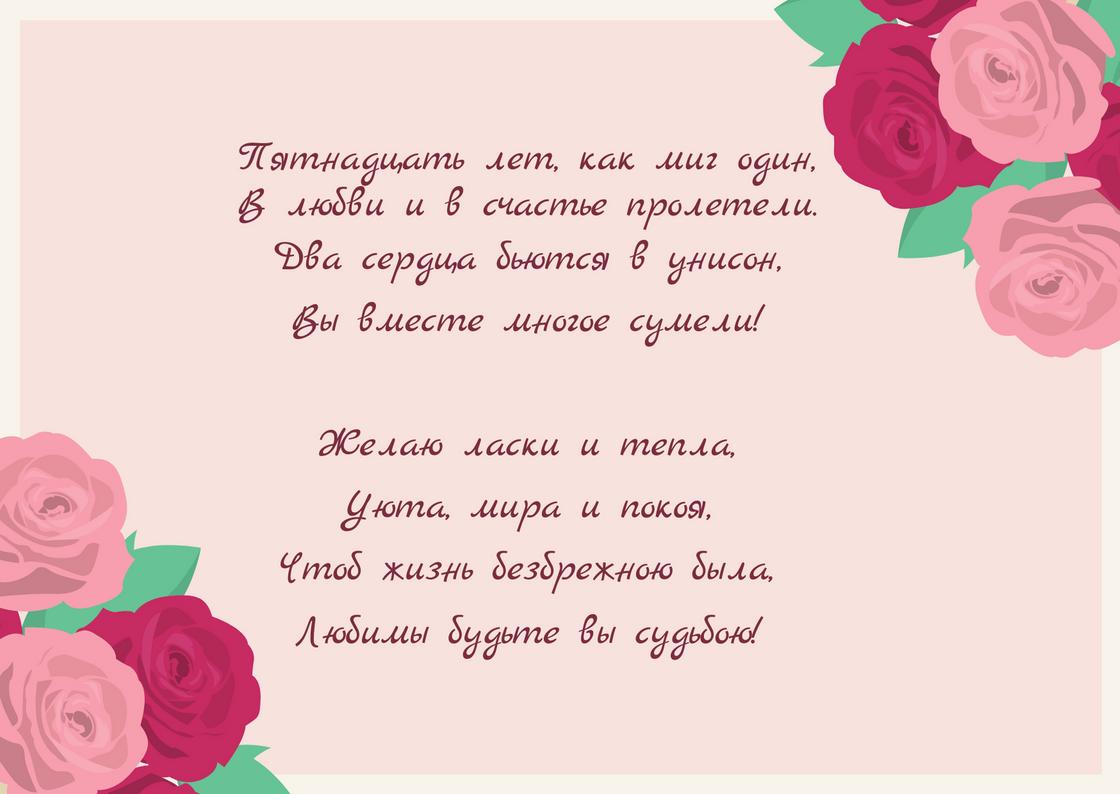 Поздравление красивое на Годовщину Свадьбы 15 лет.