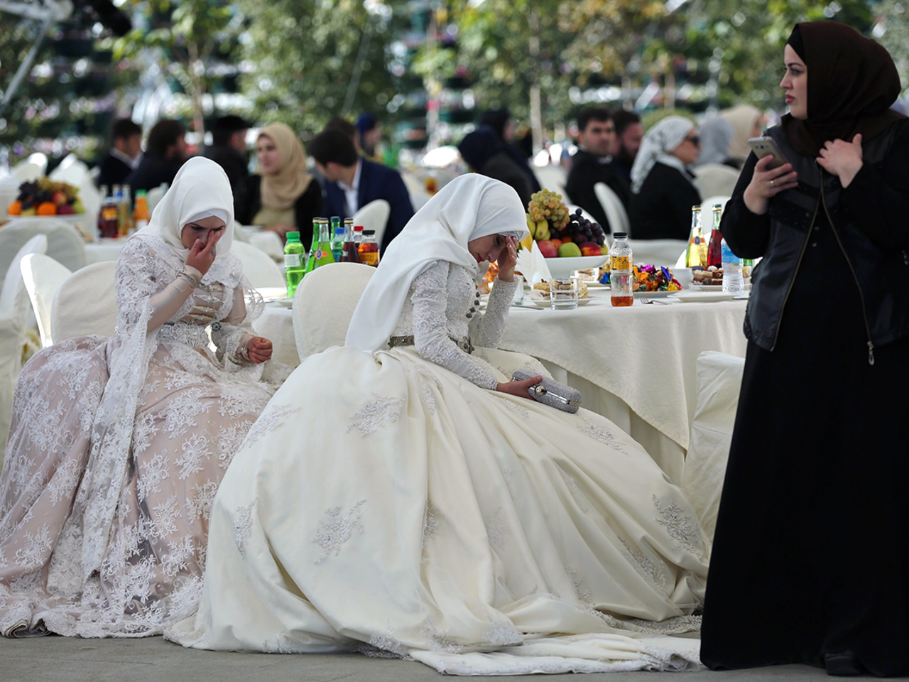 Похоже, она проливает еще больше слез, покидая семейный дом и направляется на церемонию Фото: Getty ImagesПоскольку жених несет ответственность за оплату чеченских свадеб, члены его семьи — единственные приглашены на прием.