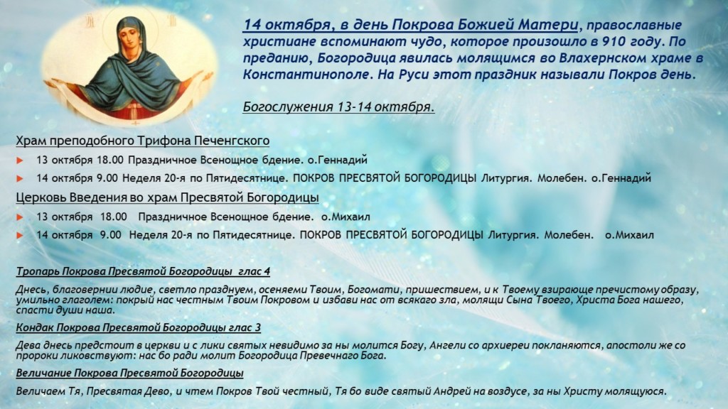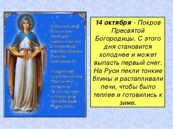 Близится один из важнейших праздников православной церкви — Покров Пресвятой Богородицы.