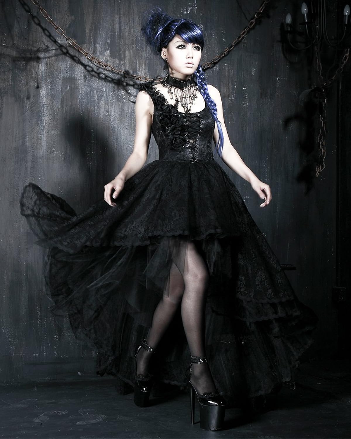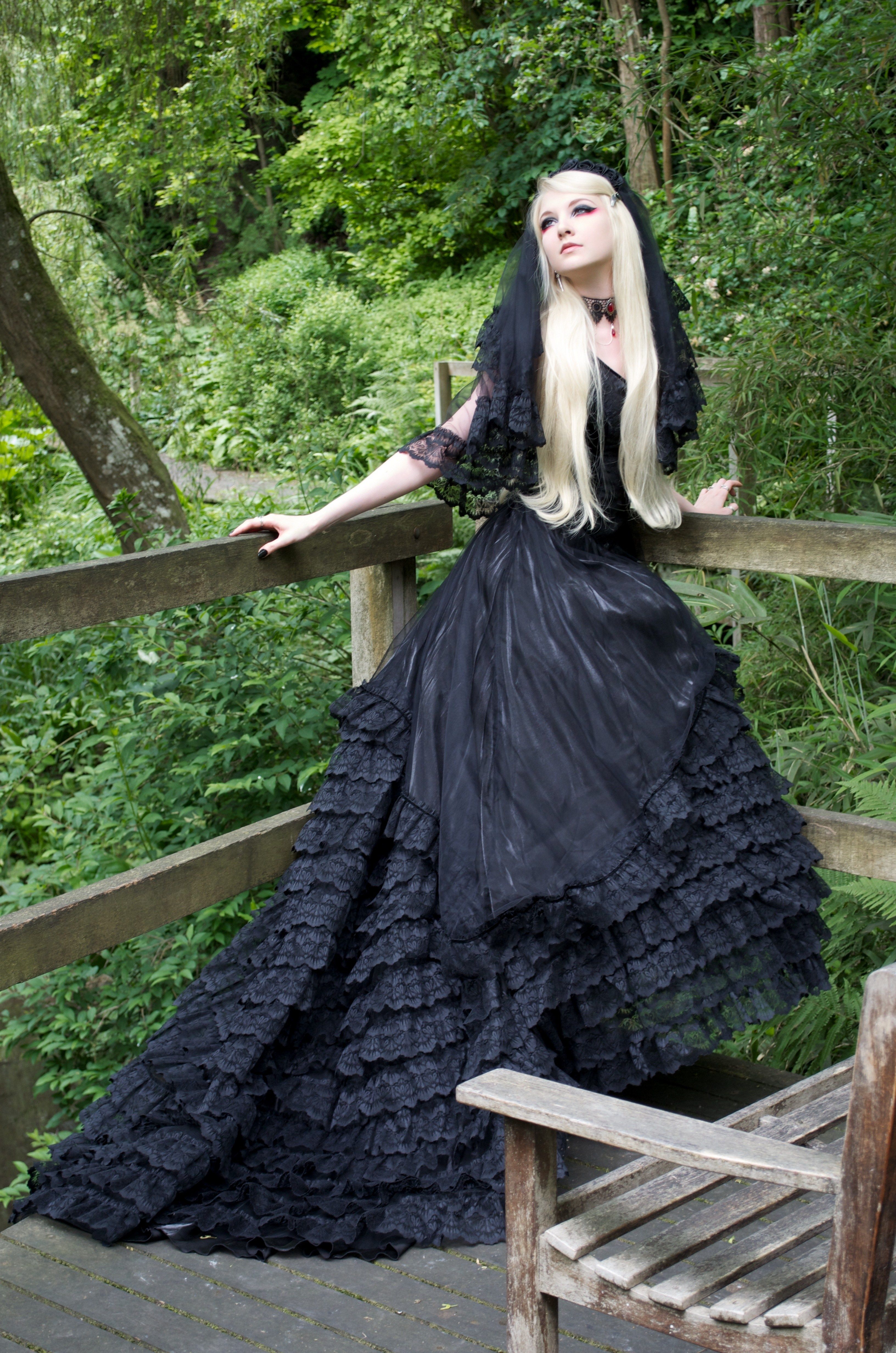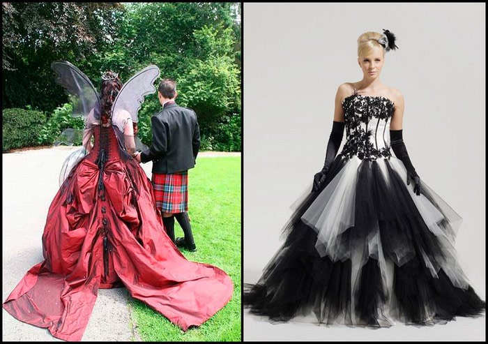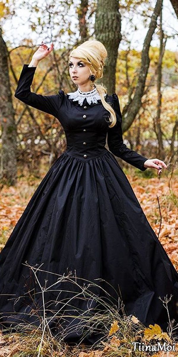Рынок свадебных нарядов предлагает красивые платья черного цвета. Тем не менее, цвет – не единственный фактор, определяющий готический стиль. Чтобы не выглядеть слишком мрачно, можно остановить выбор на классическом длинном платье в викторианском стиле или же надеть мини-платье в стиле Готической Лолиты.