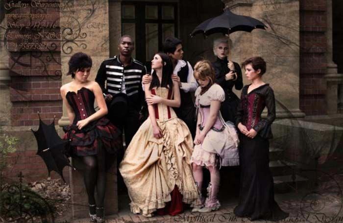 По сути, в одеждах готов преобладает такой стиль как неоготика, снискавший известность и популярность в Европе в Новое Время. Более детально взглянем на костюмы молодых.