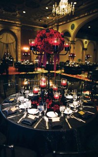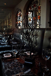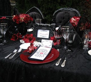 Подыщите необычный ресторан со старинной отделкой помещения. Оформите банкет в базовых цветах готической свадьбы (черный, белый, бордовый). Интригу на банкете добавит освещение с помощью свечей. Поставьте их в канделябры, как это делали аристократические семьи. Или же займитесь оформлением подсвечников с помощью ажурных тканей или специальной клеящейся бумаги. Поставьте много роз (красных и черных). Оформлению помещения особую «изюминку» придадут букеты засушенных цветов и трав. Кроме того, используйте зеркала, которые будут причудливо отражать свет и создавать игру образов.