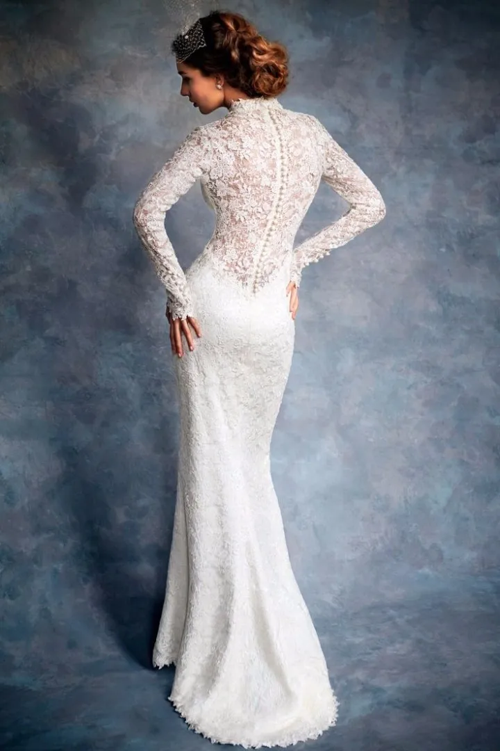Длинное кружевное платье является настоящей золотой серединой между современными трендами свадебной фешн-индустрии и классическим стилем.