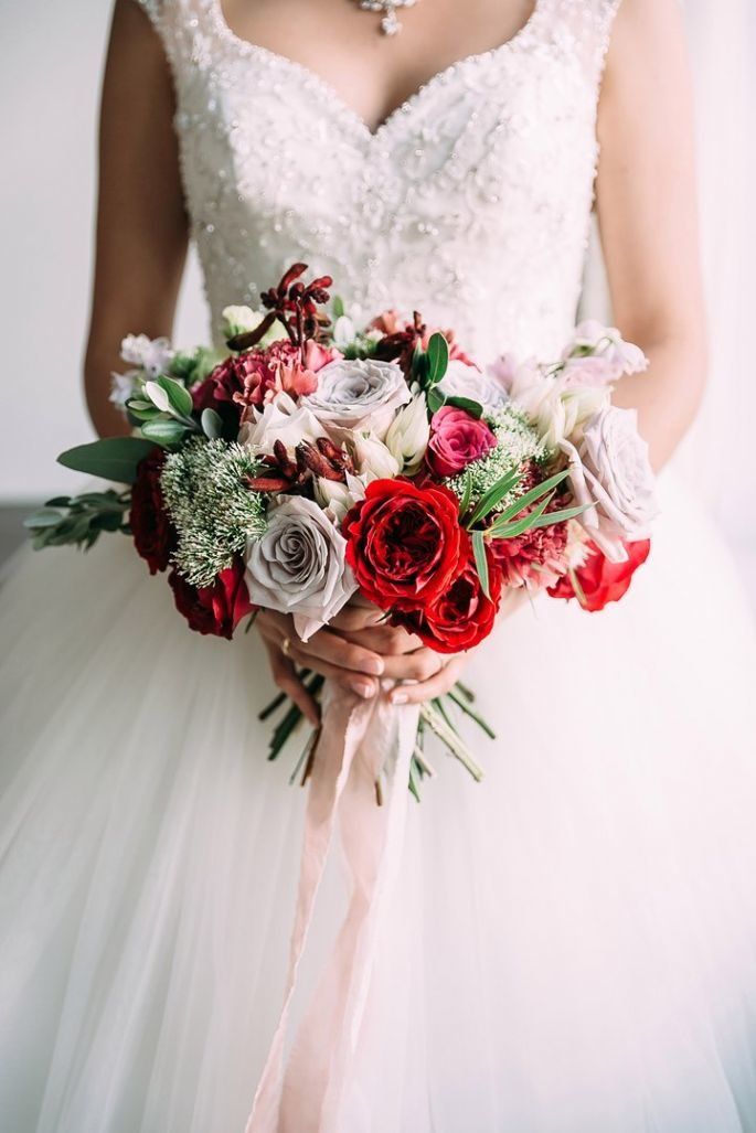Красный букет невесты: выбор цветов, оформление, красивые сочетания