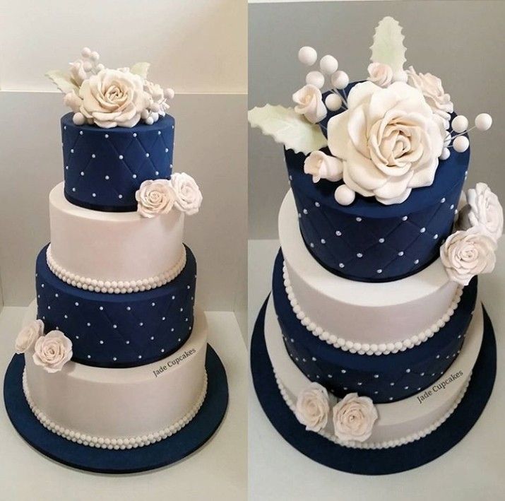 Королевский синий и белый свадебный торт с розеткой и жемчугом Свадебные торты с кексами Королевский синий свадебный торт Королевский синий торт