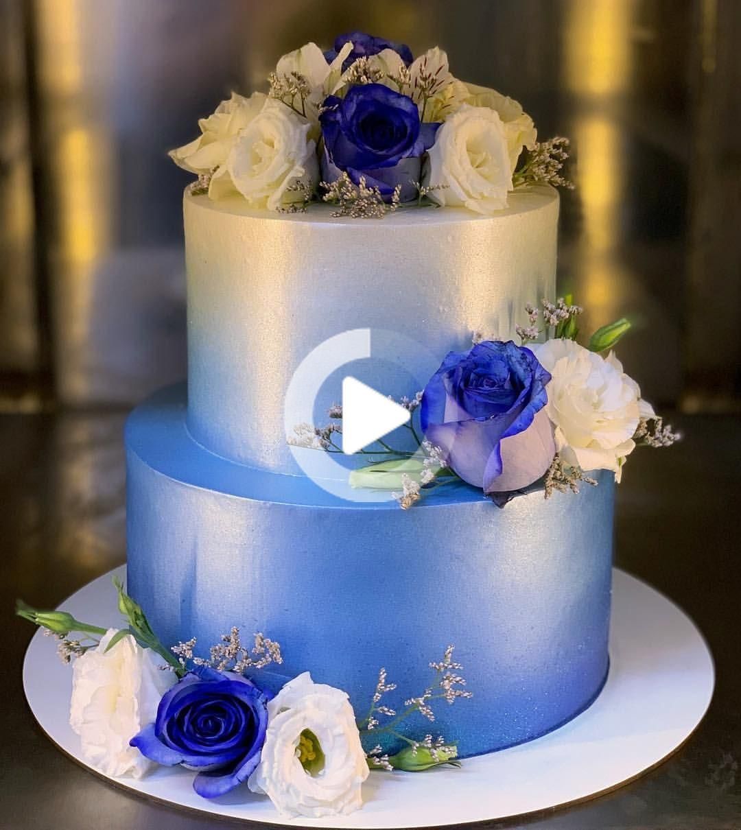 Вот и я снова с очередным свадебным тортом. Это был трехъярусный синий свадебный торт, сделанный из сливочного крема. Невеста держала в руке изображение похожего торта, когда она попросила меня создать торт ее мечты.