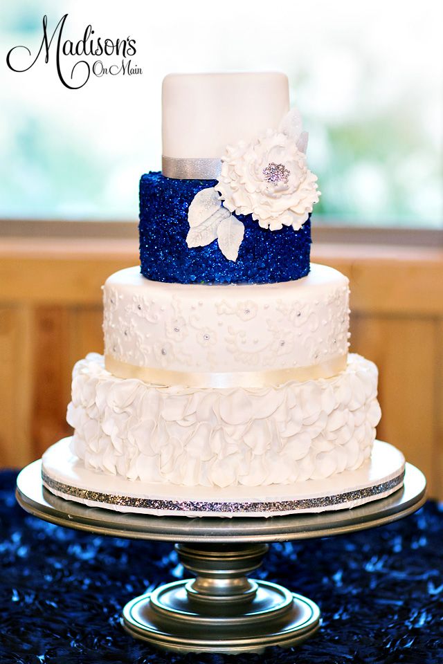 Бело-синий свадебный торт с серебряными украшениями Королевские синие свадебные торты Свадебные торты Синяя лента для свадебного торта