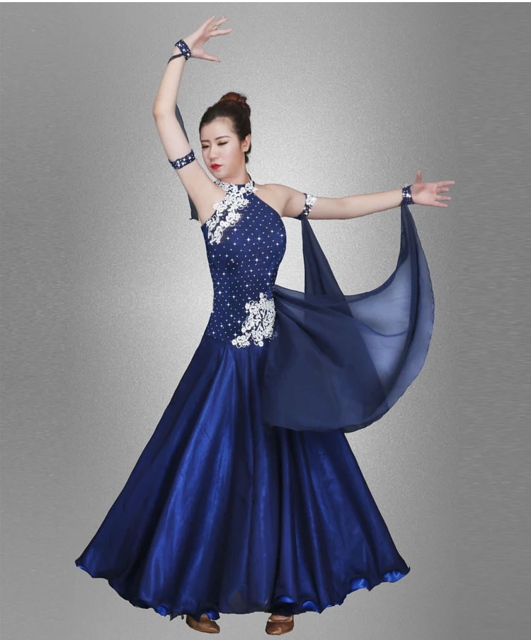Юбка в бальном наряде имеет множество вариаций форм: А-образная, «тюльпан», «колокол», и может начинаться от линии талии или чуть ниже, от бедер.