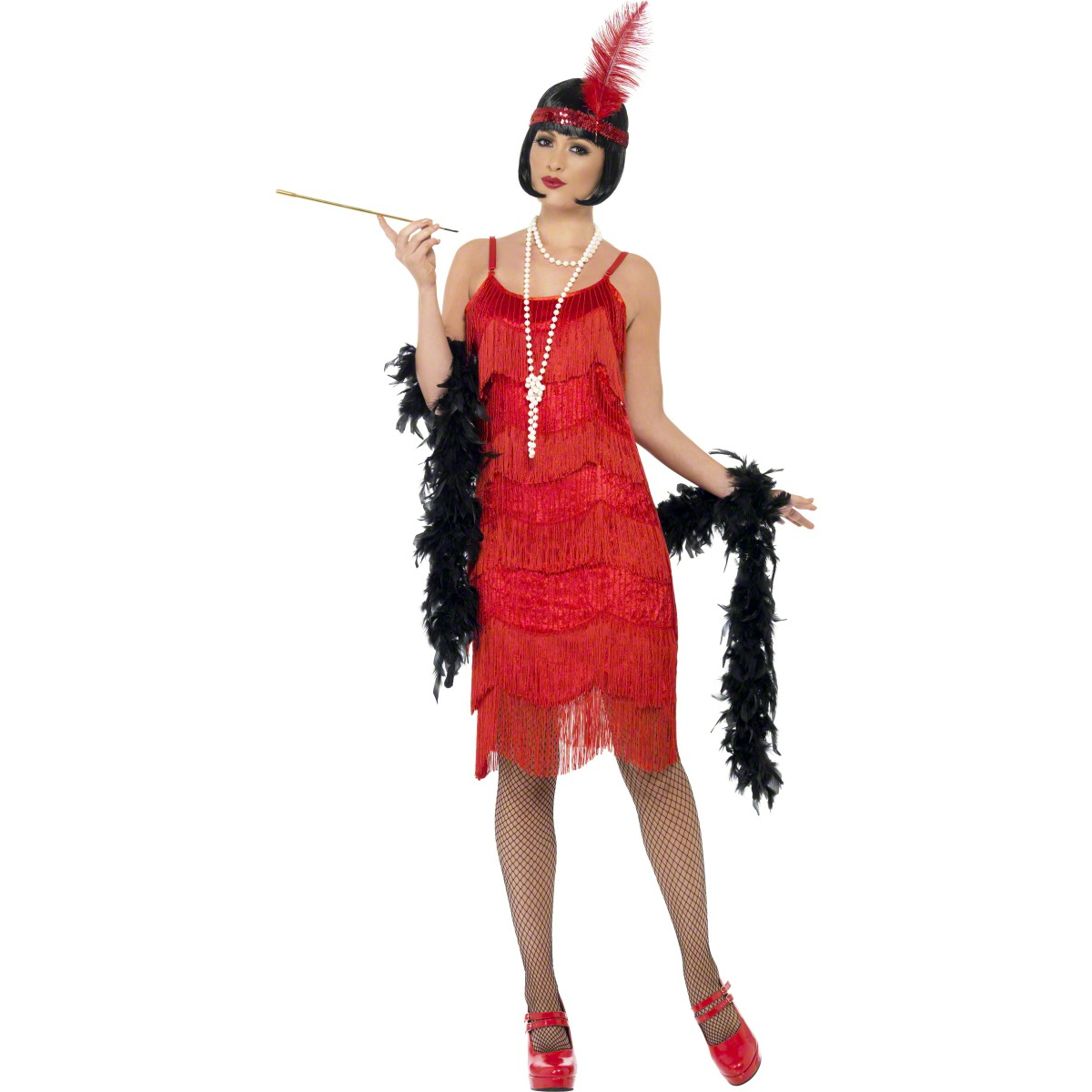 Также женщины носили небольшие сумочки-ридикюли, множество украшений, особенно из жемчуга, сетчатые или прозрачно-черные чулки, перчатки, мундштуки и меховые шубы.