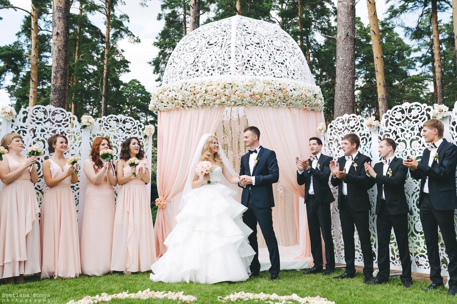 Выездная регистрация брака – это красивая и яркая свадебная церемония, хорошо знакомая нам по фильмам и сериалам. Прекрасная арка, неземной красоты декор, подружки невесты в одинаковых платьях, романтическое музыкальное сопровождения и обаятельный регистратор – все это заставит ваших гостей переживать церемонию с трепетом.