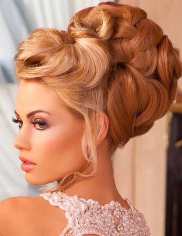 - уместны пышные прически, украшенные сложным плетением;